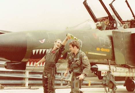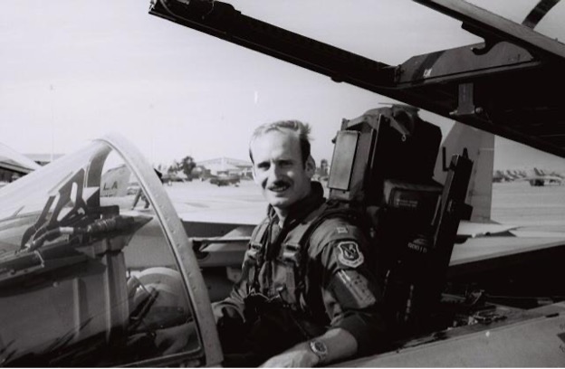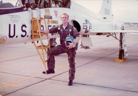 Fighter Career Photos Author in front of MiG-23 F-5E at Clark AB Harriet pinning on wings Fighter Comparison Chart Author in 94th TFS F-15 over Jordan, July '88 F-15 cockpit at Luke AFB, Arizona, January '87 Final flight in the F-4E at Osan AB, ROK, August '81 Aggressor pilot, F-5E, Clark AB, RP, November '82 Author atop his F-4E at Osan AB, ROK, Spring '81 T-38 in UPT, Vance AFB, Oklahoma, October '77