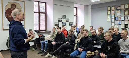 The author, seen here addressing cadets of the Ukrainian Air Force Academy
